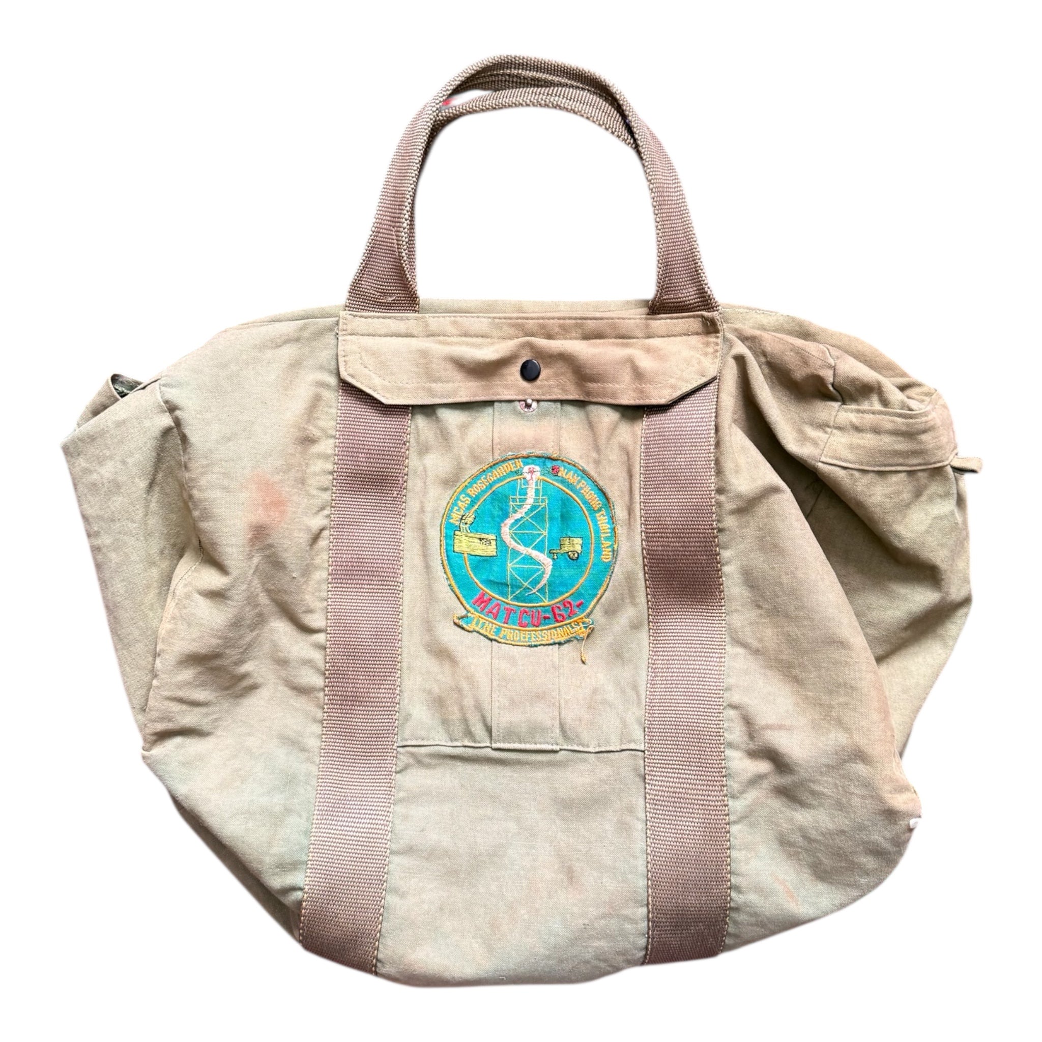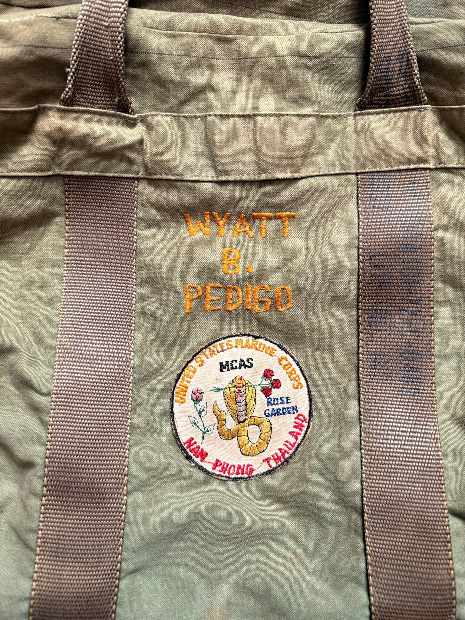 The bag itself shows honest, period wear, consistent with operational use, and retains strong character throughout. Named flight bags with verifiable Southeast Asia aviation ties—especially those linked to now-extinct units like the MATCUs—are among the most desirable Marine Corps aviation collectibles.