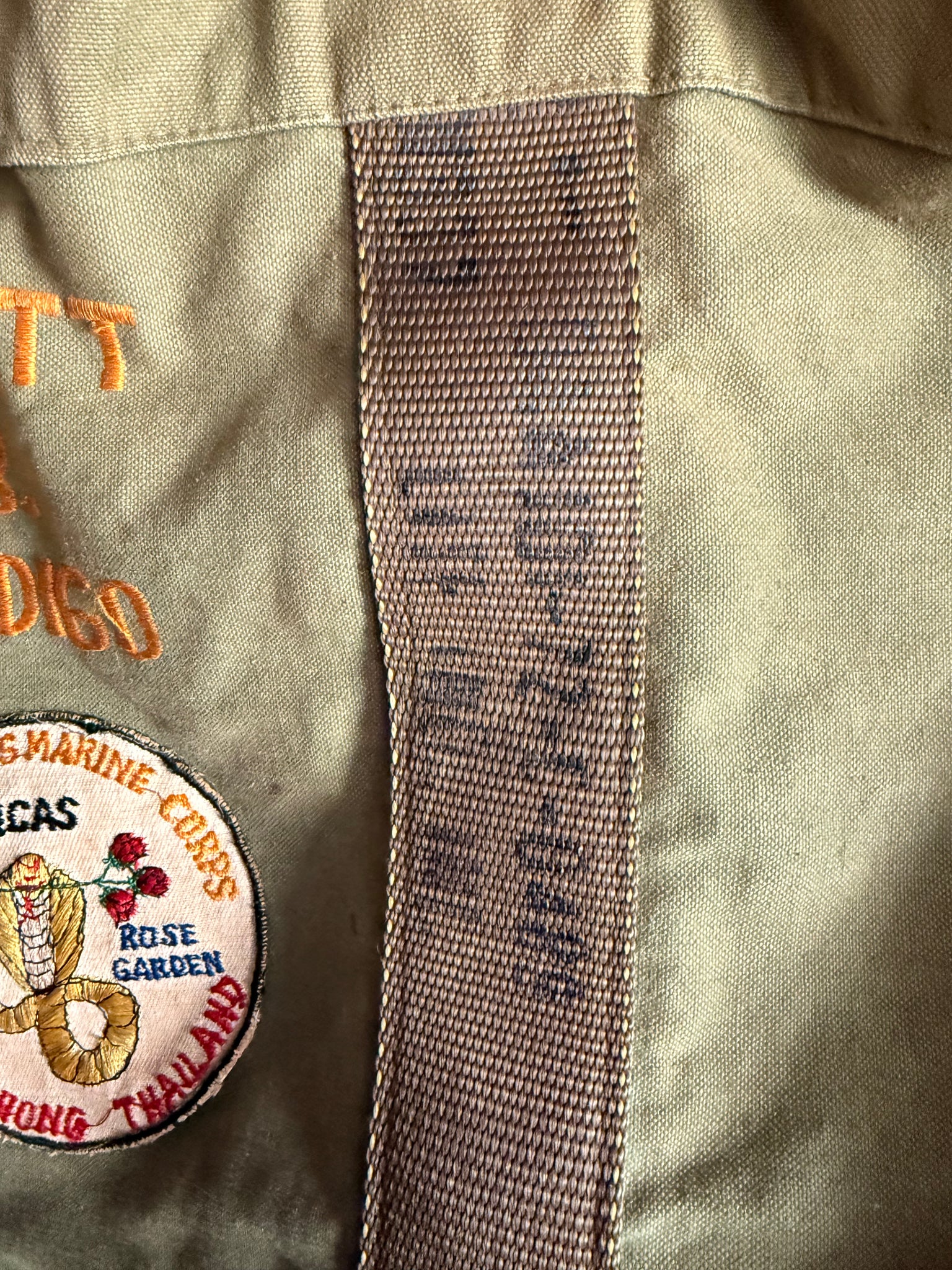 The patches are key. MCAS Rose Garden (Nam Phong, Thailand) was a strategically important Marine Corps Air Station during the Vietnam War, supporting air operations throughout the region. The presence of theater-made patches—locally produced rather than stateside contract—adds a layer of authenticity and scarcity that advanced collectors prioritize.