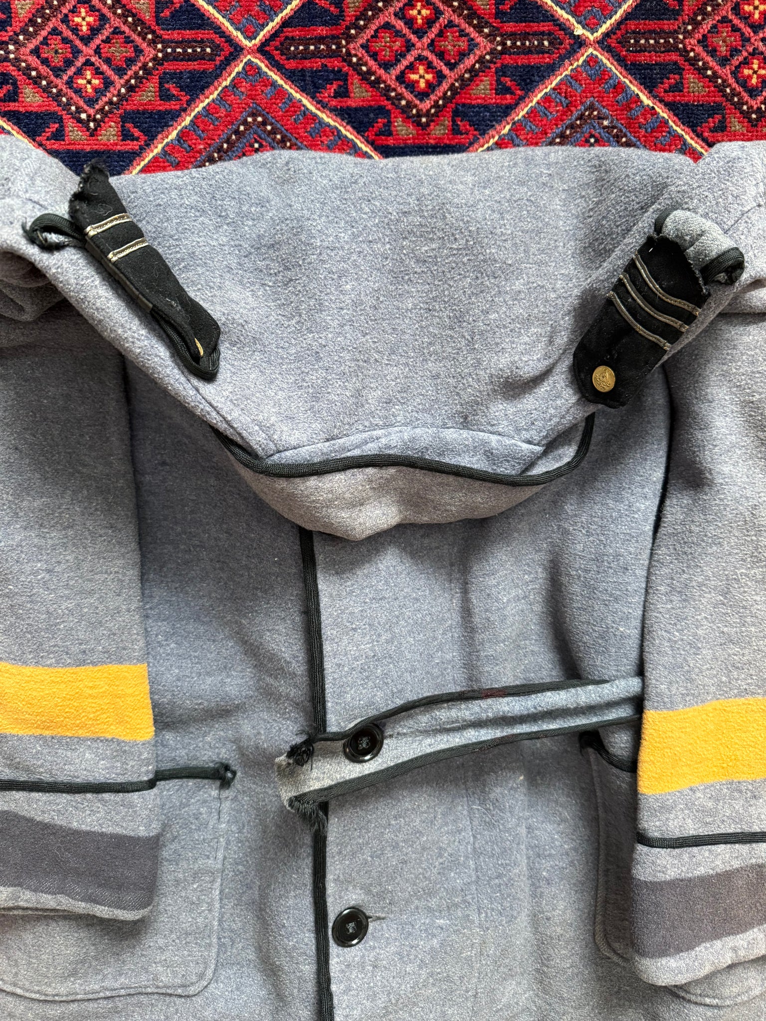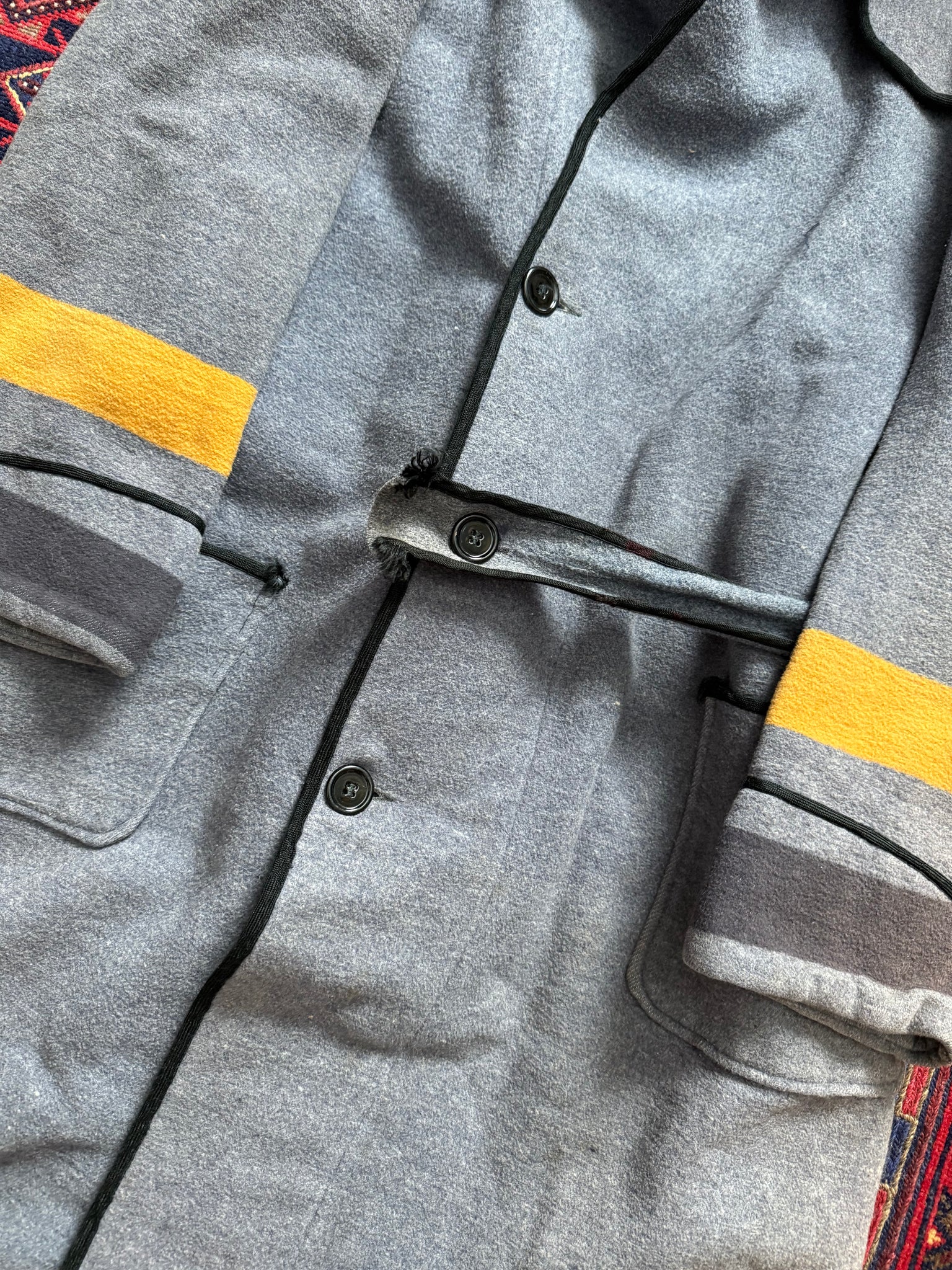 A striking piece of U.S. Military Academy history, this West Point Cadet robe is named to Cadet Sims and features authentic details that reflect the precision and pride of West Point tradition. Made from heavyweight wool in classic cadet gray, the robe includes rank epaulets on the shoulders, signaling leadership and achievement within the Corps of Cadets.