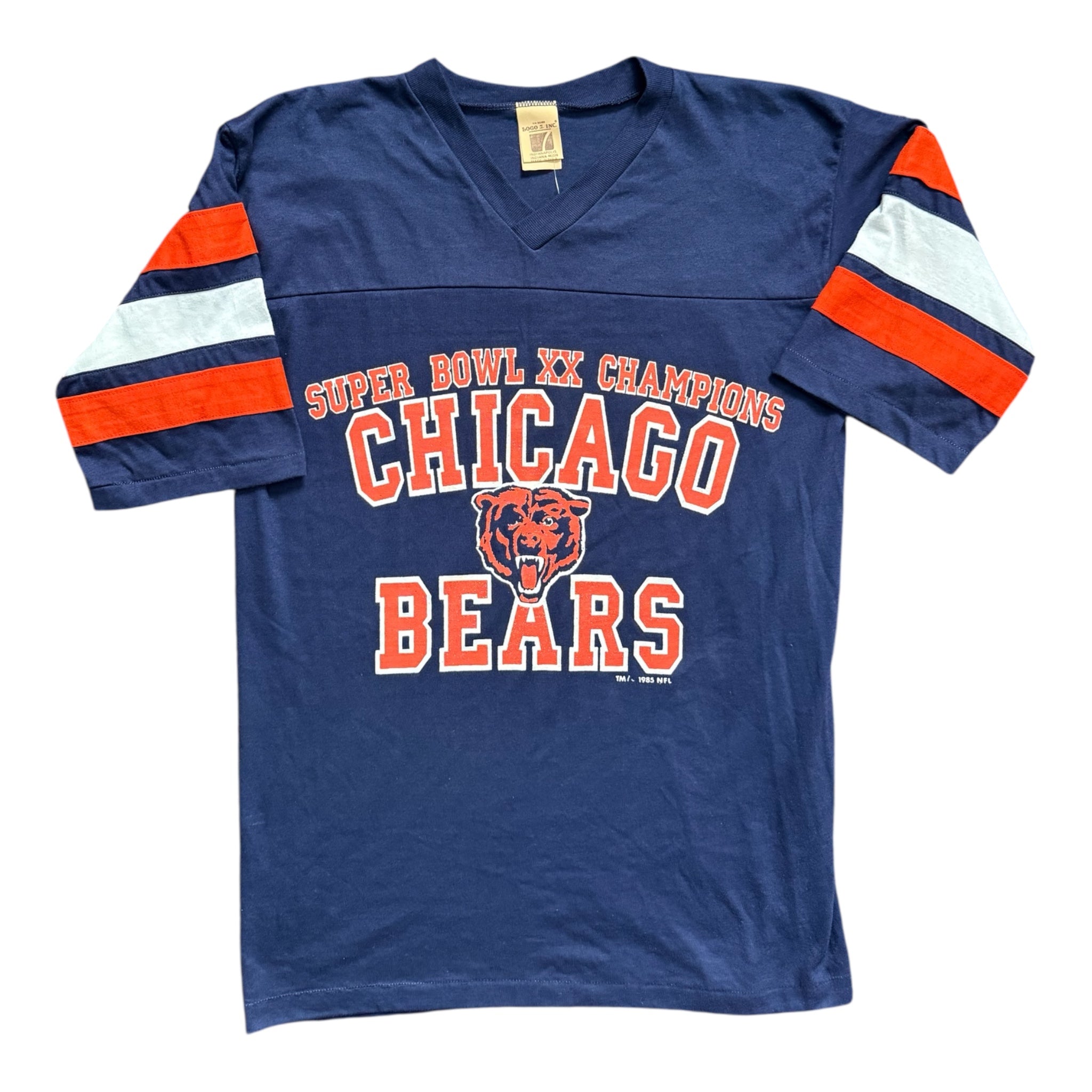Celebrate one of the greatest moments in NFL history with this vintage 1985 Chicago Bears Super Bowl XX jersey-style t-shirt. Made to commemorate the Bears’ legendary victory over the New England Patriots, this piece captures the energy of Chicago’s dominant season and their only Super Bowl championship.